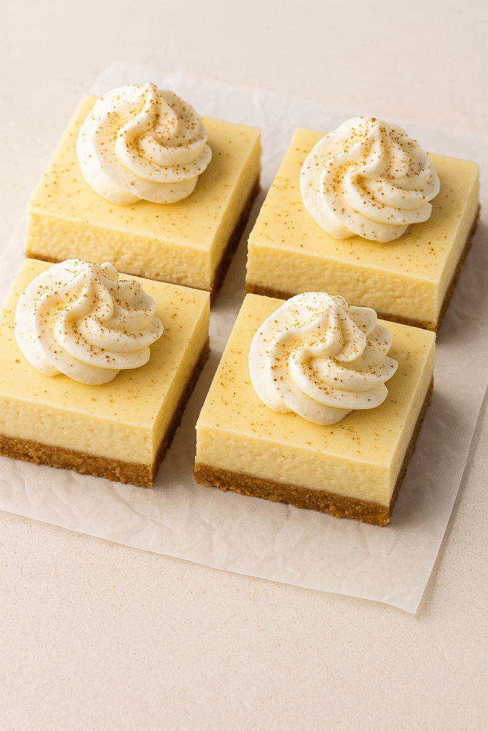 Rich, creamy, and perfectly spiced with nutmeg and cinnamon — these Eggnog Cheesecake Bars are an irresistible holiday dessert with a buttery graham cracker crust and smooth eggnog filling.
