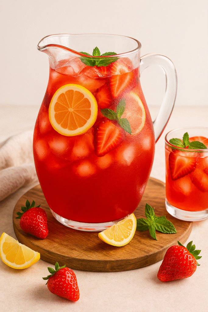 A vibrant Southern punch that blends homemade sweet tea, fresh strawberries, and lemon for a refreshing, crowd-pleasing drink. Perfect for gatherings and summer afternoons!