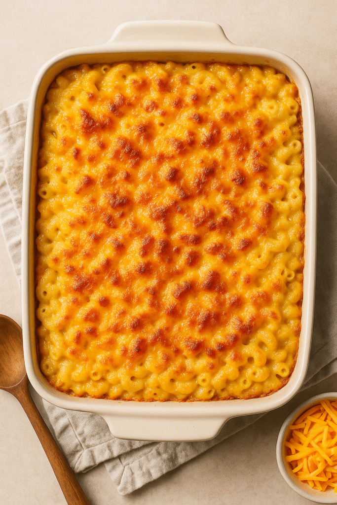 • Creamy, cheesy, golden, and baked to perfection — this Southern-style mac and cheese is rich with layers of flavor, crispy edges, and a soul-food touch. Perfect for Sunday dinners, Thanksgiving, and any holiday feast.